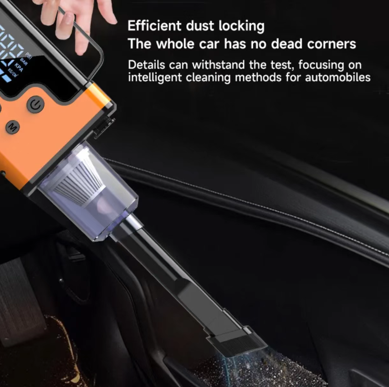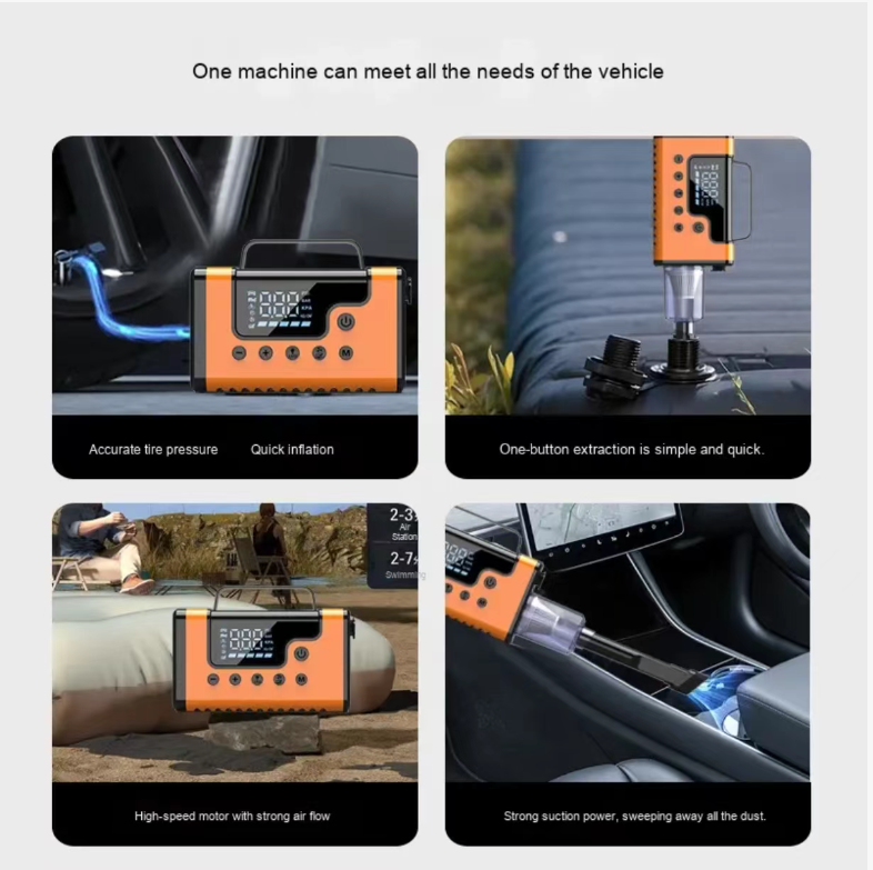 The car runs out of power, the tires are flat, the cabin is dusty... When you encounter these annoying problems when going out, this all-in-one air pump can handle them all at once, making it much more convenient than carrying a toolbox.