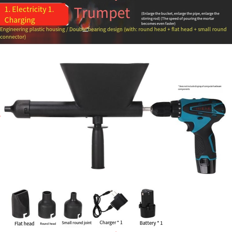 This electric joint filler gun is as efficient as 20 manual ones. It is compatible with construction electric drills and fills joints evenly and densely. With a funnel-shaped feed opening and a non-slip handle design, it is durable and sturdy. It also comes with multiple nozzle tips, making it an efficient tool for filling joints in brick walls and doors.windows at construction sites, ensuring both speed and quality in the construction process.