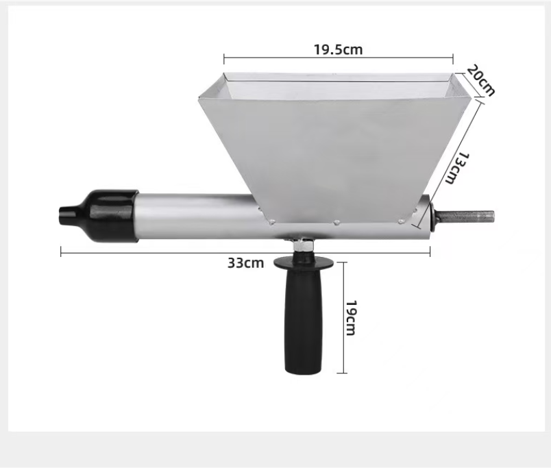 Funnel-shaped feed opening: large-diameter design, making it less likely to spill materials when adding them at the construction site, and allowing cement mortar and other materials to enter the gun body quickly and smoothly, reducing material waste;
