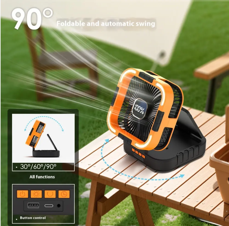 Whether it's a park picnic, an outing in the countryside, or a small gathering on the balcony, it can perfectly adapt: cooling with wind, lighting for supplementary illumination, charging devices, all handled by one unit, making every outdoor trip comfortable and convenient.