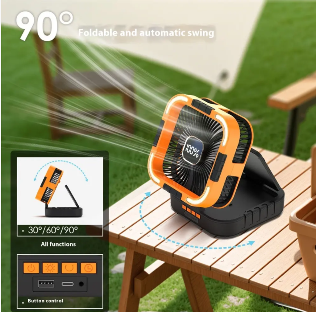 Did you get tired of being plagued by sweltering heat, insufficient light, and dead batteries during camping? This foldable solar camping fan combines "6-speed adjustable fan + LED lighting + power bank" into one. It can be charged by solar energy and allows you to enjoy coolness, light, and power freedom outdoors, upgrading your camping experience to "luxury and wild charm".