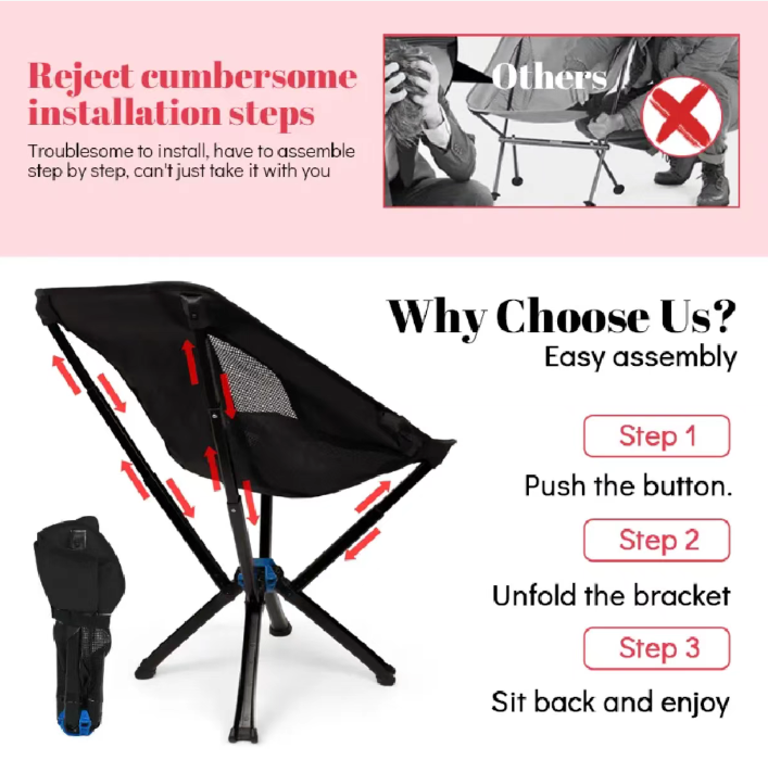 • Aluminum alloy outdoor camping ultra-light portable folding chair for easy carrying and portability