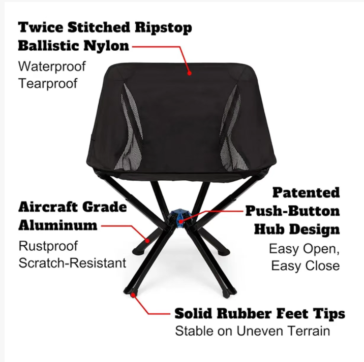 It's ridiculously lightweight: aluminum frame + 600D Oxford fabric + breathable mesh surface. The entire chair is so light that it can be lifted with one hand. When folded, it shrinks into a small cloth bag, which can fit into the side pocket of a backpack or be hung on the handle of a camping vehicle without taking up space. There's no need to struggle to carry the equipment. You can truly achieve "camping on the go".