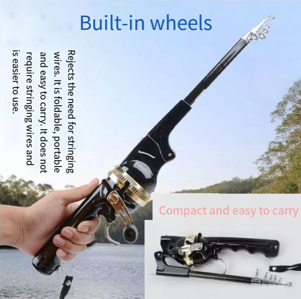 This folding fishing rod can be folded for easy portability. It is made of high-strength carbon fiber with a durable structure, suitable for sea fishing. The built-in reel allows for smooth line release, and the non-slip grip is comfortable to hold for a long time without getting tired. It can be assembled in just a few seconds. The accompanying accessory package is complete with fishing gear, and you can start fishing in no time by just putting it in your pocket.