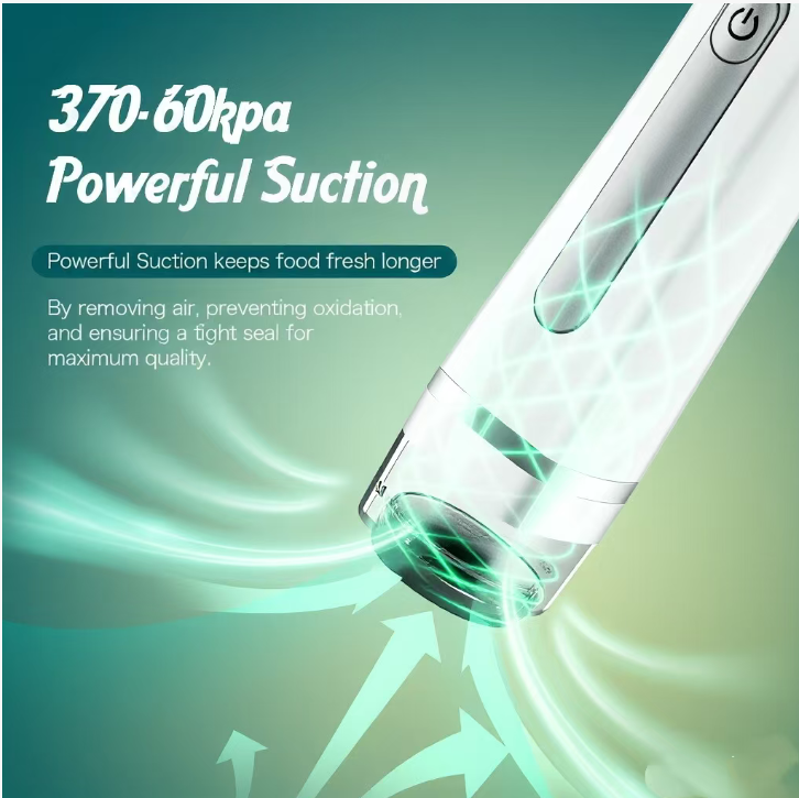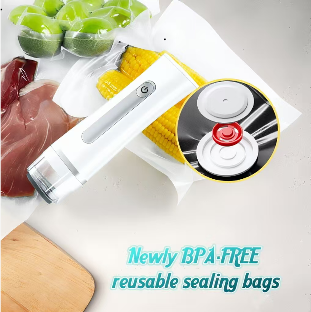 This handheld vacuum machine is wireless and portable. It can be operated with one hand and automatically stops after vacuum sealing. It is suitable for all kinds of ingredients such as seafood, nuts, fruits and vegetables. The BPA-free bag can be reused. It has a long battery life, keeps the freshness and prevents cross-contamination, extends the freshness of the ingredients, and reduces kitchen waste.