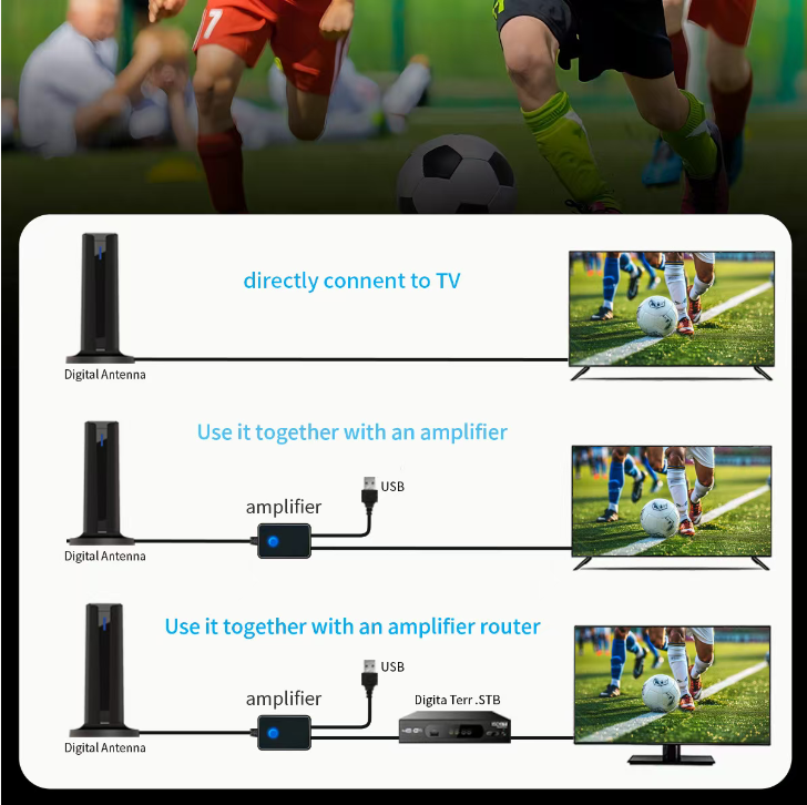 High-definition picture quality is a "basic operation": It receives HDTV digital signals, unlike the analog signals of old antennas that are blurry and gray, nor like some compressed cable TV that is all jumbled. When watching variety shows, the details of the guests' makeup, when watching movies, the dark areas of the picture, and when watching football games, the fast shots, can all be clearly displayed on the screen. A hundred-yuan antenna can produce the texture of a thousand-yuan cable TV.