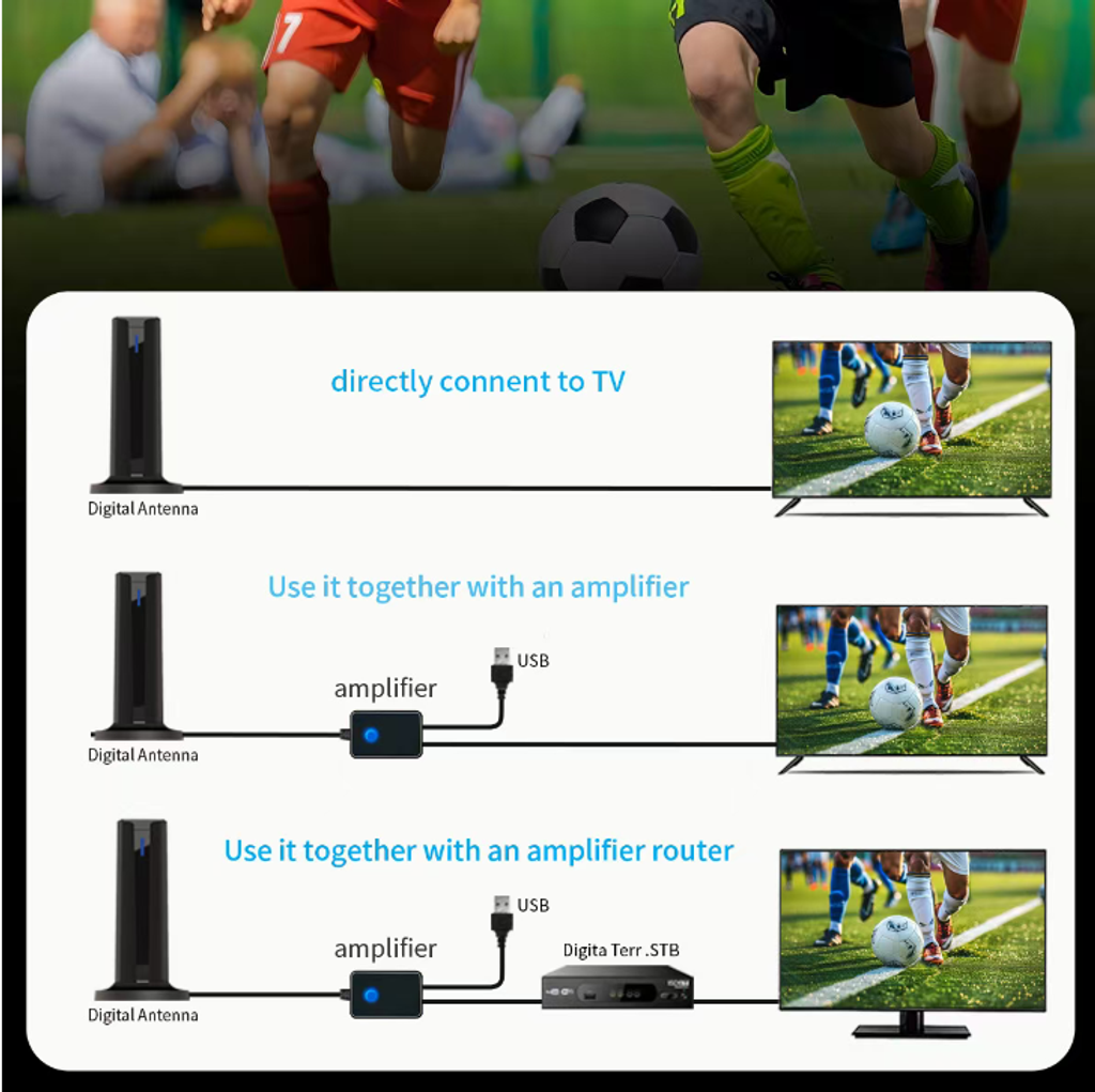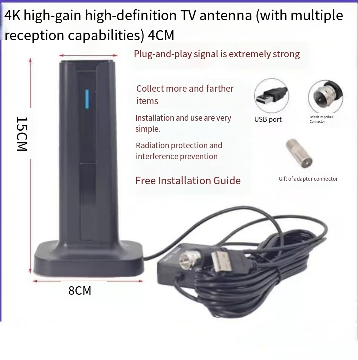 "Plug and Play" is truly a lazy person's tip: No need to hire a professional to drill holes and lay cables, no need to read complicated instructions - just connect the signal amplifier and either plug it directly into the TV (as long as the TV has an HDTV tuner), or connect it to a digital set-top box. With just two steps and 5 minutes, it's all done. Renters love it even more: When moving, just unplug it, put it in your bag, and go. No need to remove the old antenna nailed to the wall, nor to inform the landlord about "damaging the wall".