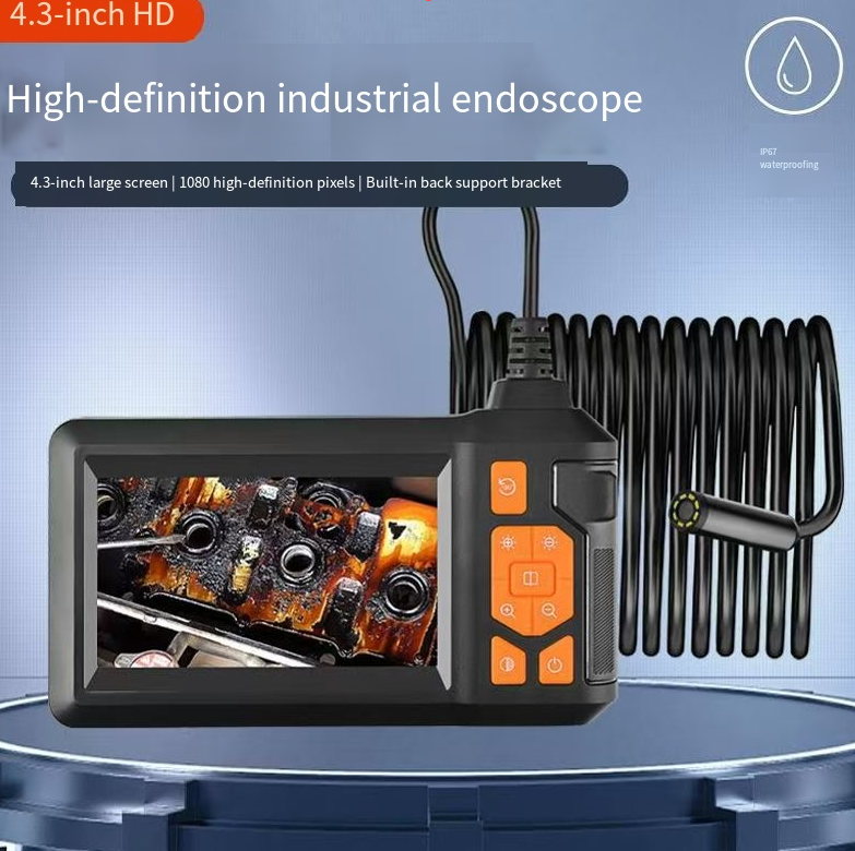 This industrial endoscope is an excellent tool for addressing blind spots: featuring a 4.3-inch 1080P screen and an 8mm mini lens, it can bend and probe narrow gaps. The back support frees up your hands. It is IP67 waterproof and has a 2000mAh battery life. It comes with a magnetic hook and is suitable for various maintenance scenarios. The operation is simple and labor-saving.