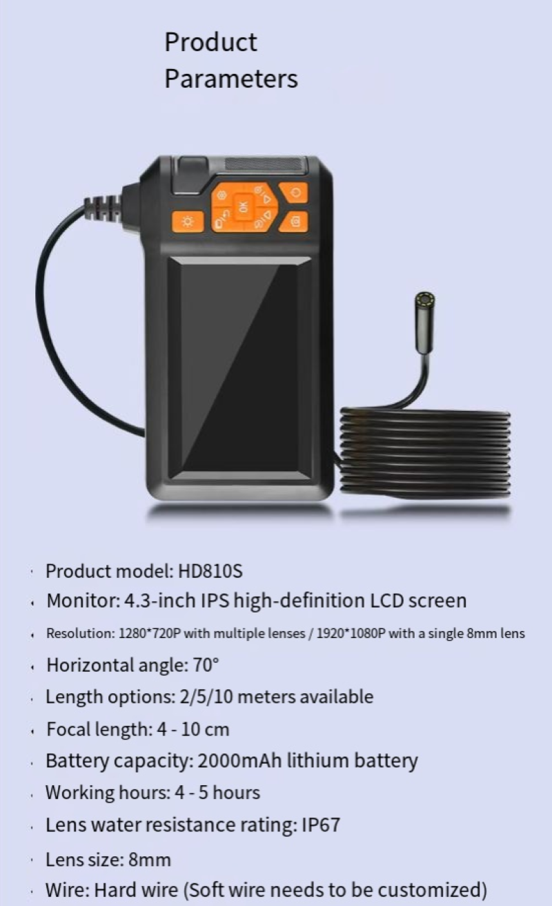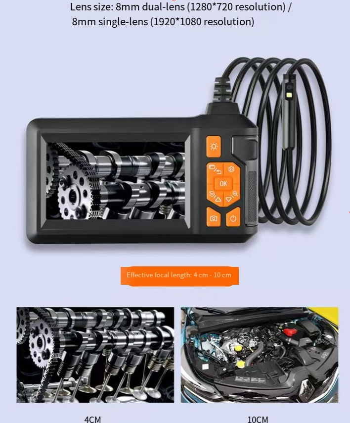 It is the "high-definition eye in the gap": 4.3-inch IPS screen + 1080P pixels, when inserted into pipes and mechanical gaps, rust, carbon deposits, and foreign objects can all be clearly seen; the 8mm mini lens can pass through narrow openings, combined with a flexible hose, it can reach deep into corners even when turning right angles, without having to dismantle the equipment to check for faults.