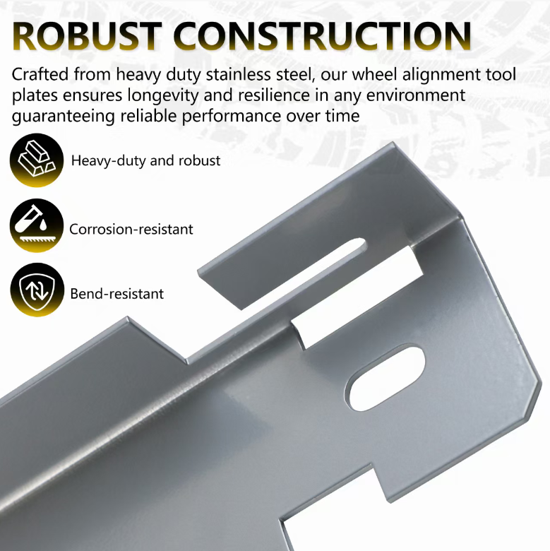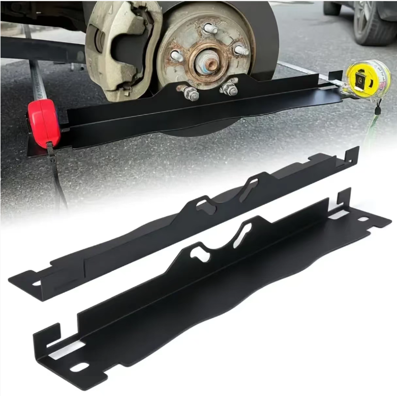 It is made of high-quality metal materials, featuring excellent strength and durability, capable of withstanding various operational pressures during car maintenance, and not prone to deformation or damage even after long-term use. Its unique design fits the installation structure of the wheels, providing stable support and reference for wheel alignment through precise holes and matching board surfaces.