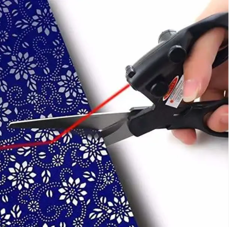 This laser-cutting scissors use infrared light for precise positioning. No need to draw chalk lines when cutting fabric. One straight cut without any waste. Suitable for fabric and handicrafts, with magnetic attachment for easy storage. Order today and you will receive 2 sets of laser-cutting scissors with infrared light, magnetic attachment, and stainless steel construction. Hurry up and place your order!