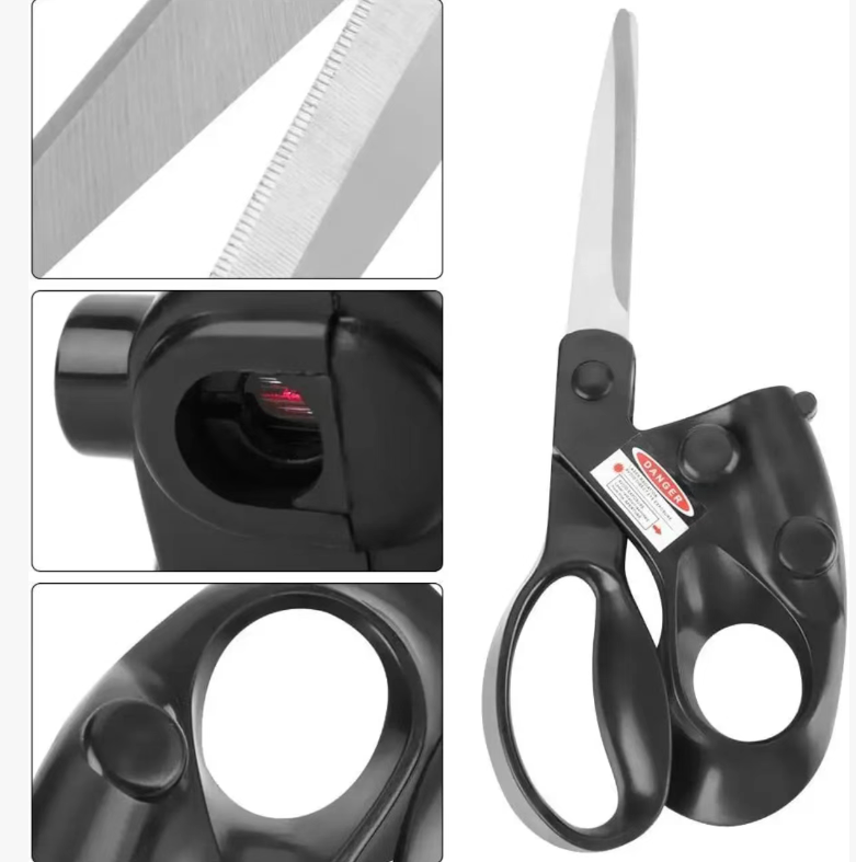 It is the "scope" of the fabric cutting industry: The handle of the scissors is equipped with a built-in laser positioning system. When the switch is turned on, a straight infrared beam will be emitted. Aligning with the fabric texture, each cut made will be straight. There is no need to draw chalk lines in advance, nor is it necessary to constantly adjust while staring at the edge. Curtains, fabrics, and papers can