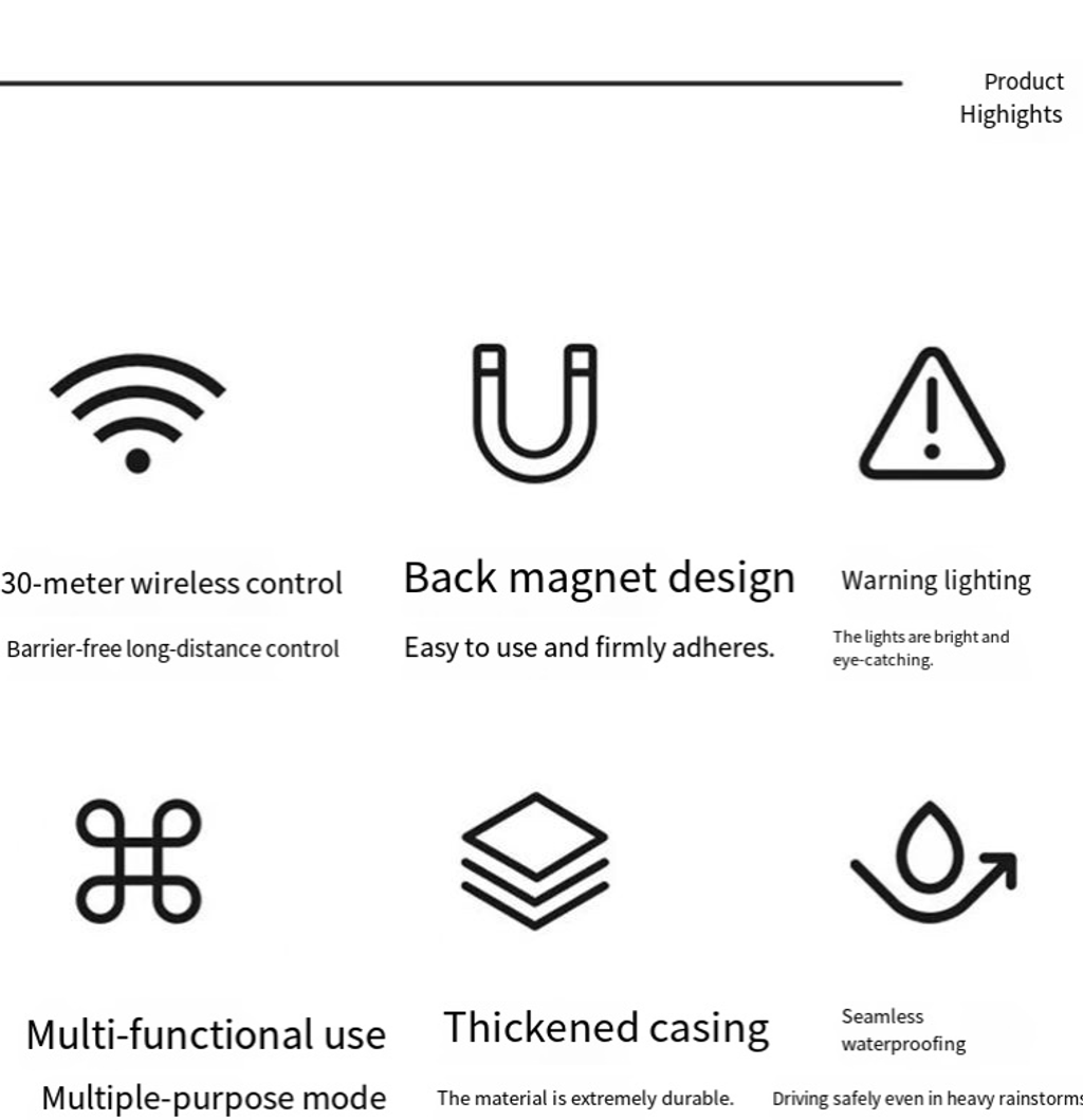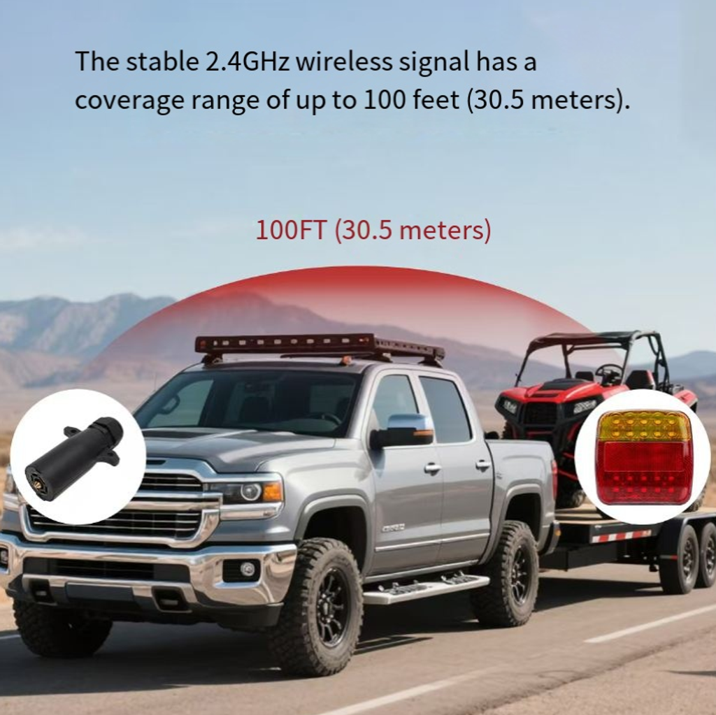 2.4G wireless control is far and stable enough: 30 meters of signal coverage, you can control the lights as the main driver when towing the vehicle - turn the steering wheel to light up the yellow light, step on the brake to light up the red light, the lights are eye-catching, and the following vehicles can see them from a long distance, reducing the panic of being rear-ended when driving at night on highways or country roads.