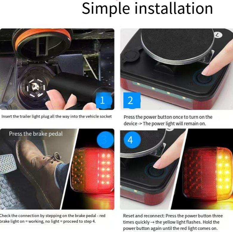 When towing, you need to pull the wire at the rear of the vehicle to connect the tail light, causing you to be in a state of chaos; temporarily installing a warning light requires drilling holes and leaving a bunch of marks on the vehicle body; when towing at night, the tail light is too dim and is often honked at by the following vehicles - this LED wireless warning tail light turns all the "installation" troubles into "plug-and-play" ease.