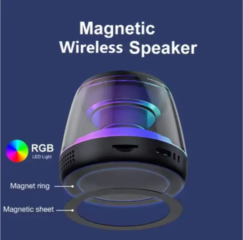 This magnetic Bluetooth speaker is amazing! 40mm magnetic driver + low-frequency diaphragm, delivering powerful bass. RGB glow + transparent body, giving a cyber vibe. The bottom is magnetically attached for use on tables or in vehicles. It can switch between mono and stereo modes. It comes with a hanging strap for portability. It offers an immersive experience for listening to music or playing games.