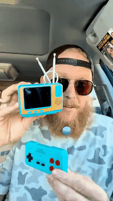 This mini retro game console is so touching! The yellow and blue body is a replica of an old TV, and it comes with classic games like Contra. The wireless controller has a feel that replicates that of the old Pong console. It can be played handheld or as a decorative item. You can carry it in your pocket. Once powered on, it instantly transports you back to the childhood arcade. Playing online or alone, it's all enjoyable.