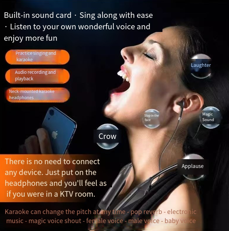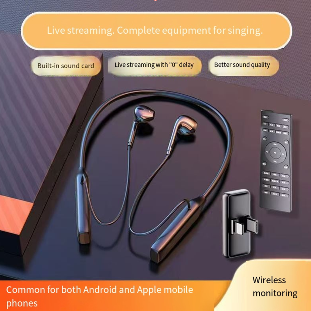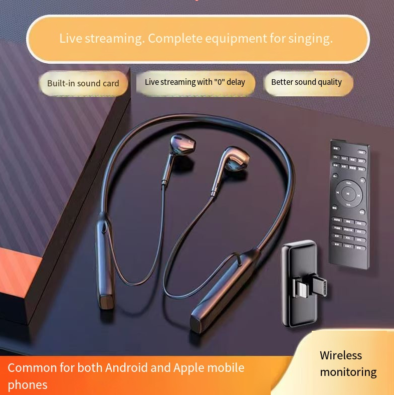 - Neck-mounted professional karaoke live-streaming wireless sound card and headphones