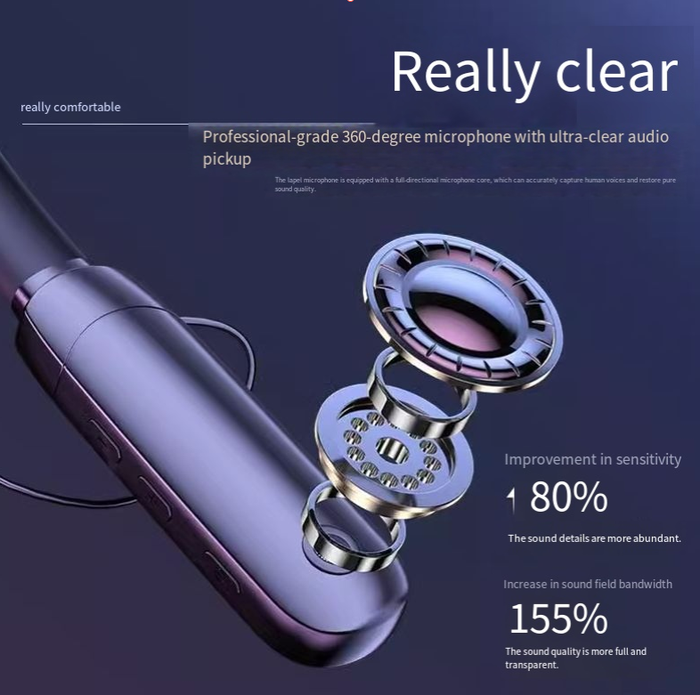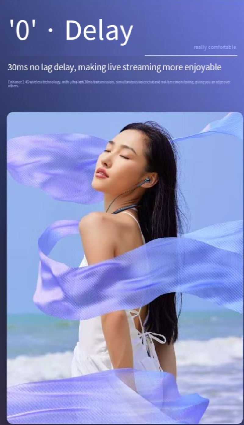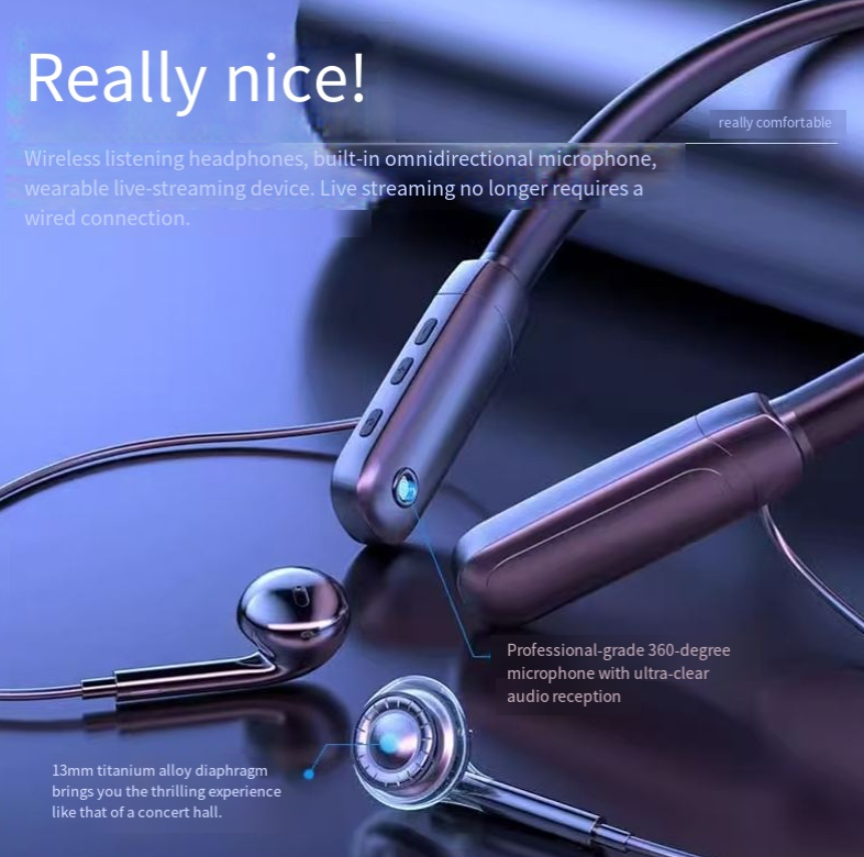 The neck-mounted design is so light that it feels like you're not wearing it at all. It won't fall off during sports or outdoor live streaming. The headphones can block out environmental noise, so for outdoor podcasting or indoor game live streaming, the sound can be "as stable as a recording studio".