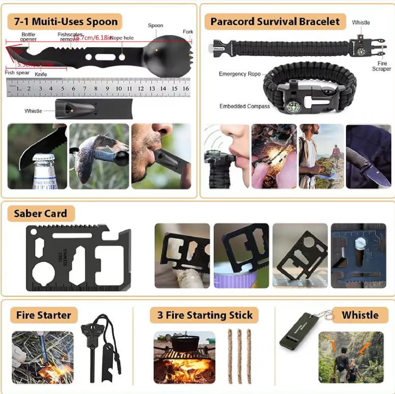 - Multi-functional survival kit for outdoor camping and first aid survival set