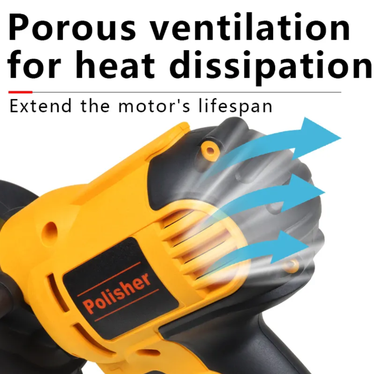 The "Porous ventilation for heat dissipation" design can quickly discharge the heat from the machine body, extending the motor's lifespan and ensuring the reliability of long-term continuous operation. The lightweight handheld design combined with plug-in power supply eliminates the concern of range limitations, allowing you to carry out work in garages or professional car beauty stores with ease.