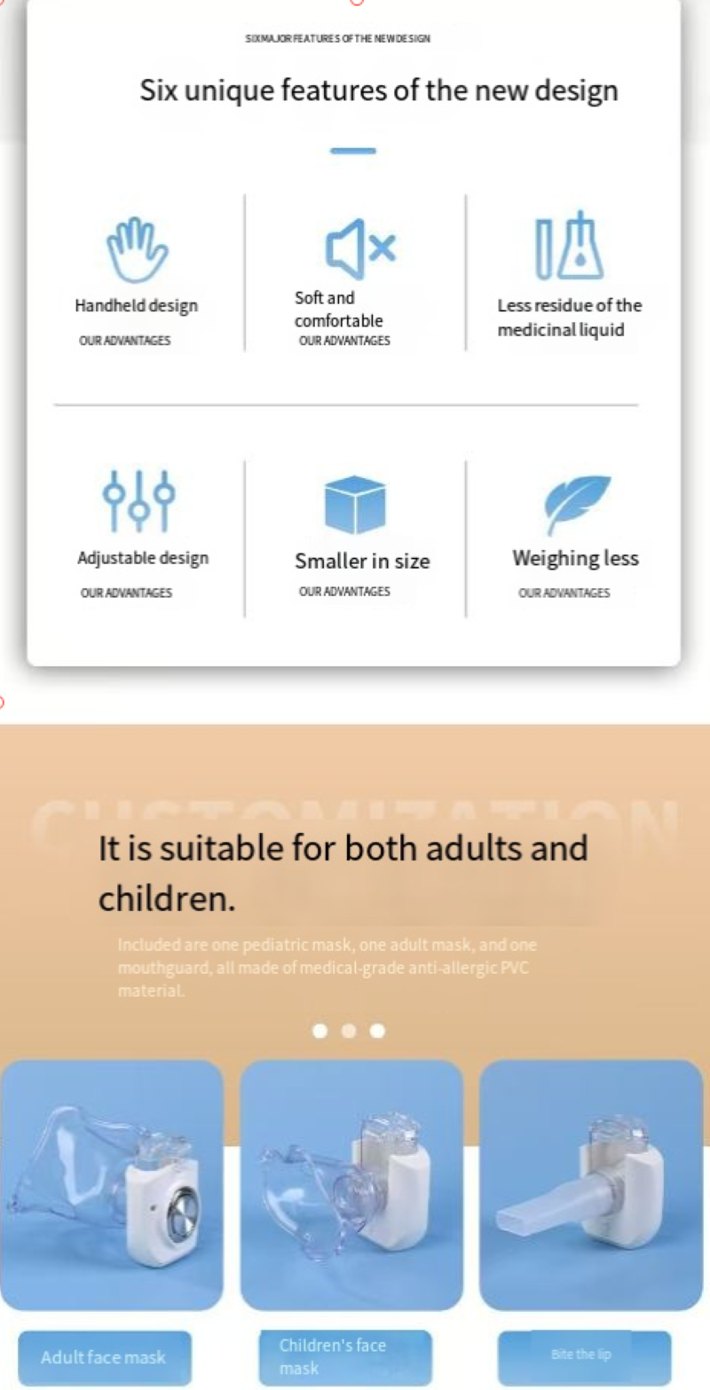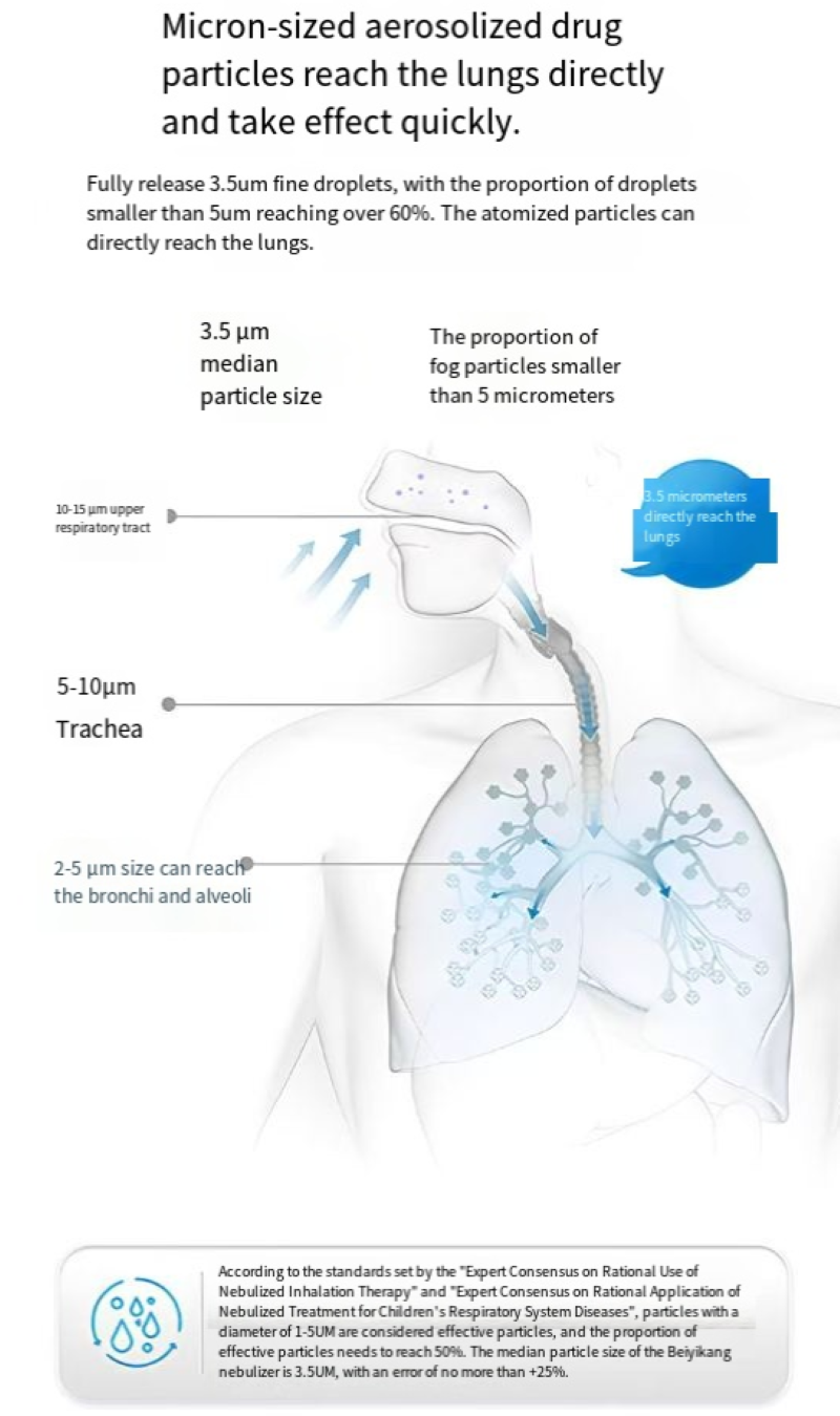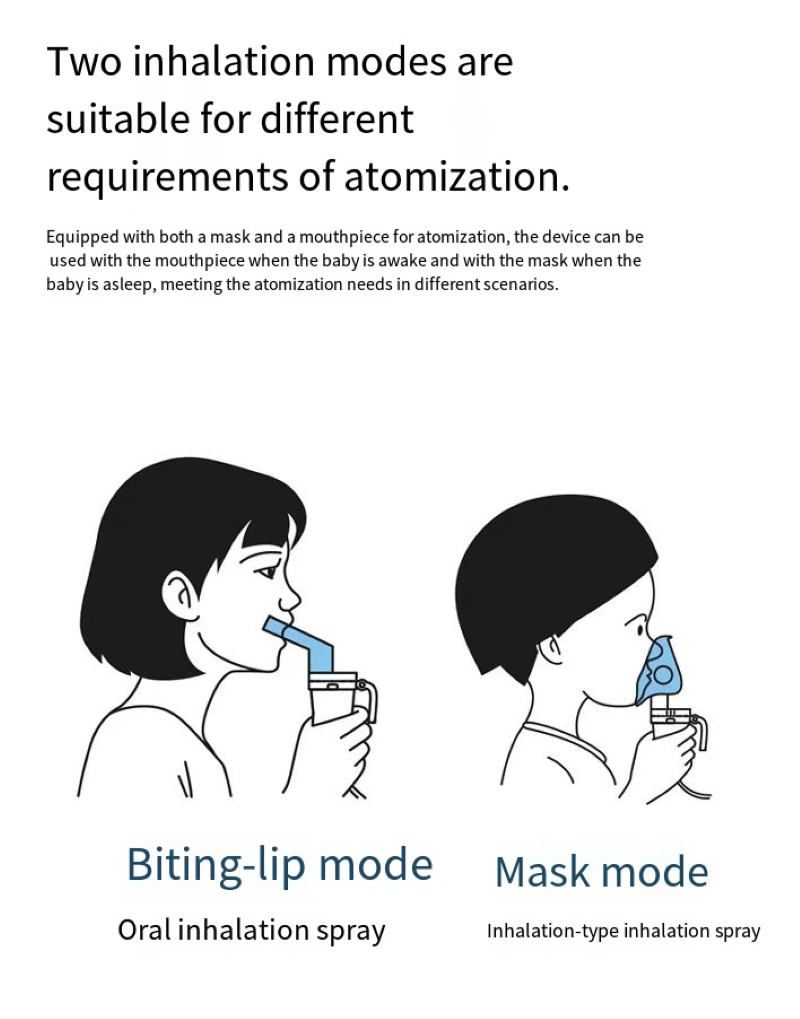 It is the "universal fit model": dual gears + large and small face masks. The small face mask for children has a gentle mist that won't irritate the throat, while the large face mask covers more thoroughly. The mist particles are so fine that they can gently adhere to the respiratory tract, without irritating the throat and causing tightness. Both the elderly and children can use it easily.