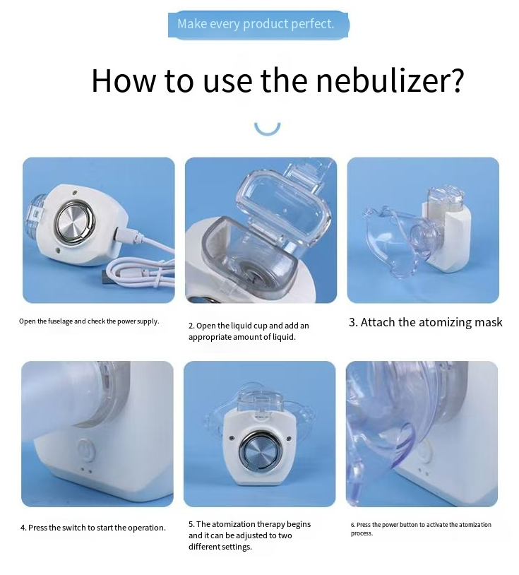 This portable nebulizer is a respiratory relief assistant for the entire family. It has two speed settings and is compatible with both adults and children. The fine mist adheres to the respiratory tract without causing choking or coughing. The residual drug liquid is low, saving a lot of medicine. It can be charged in multiple scenarios via USB. The operation is simple - just two steps to start. It can be carried in a bag and used at any time.