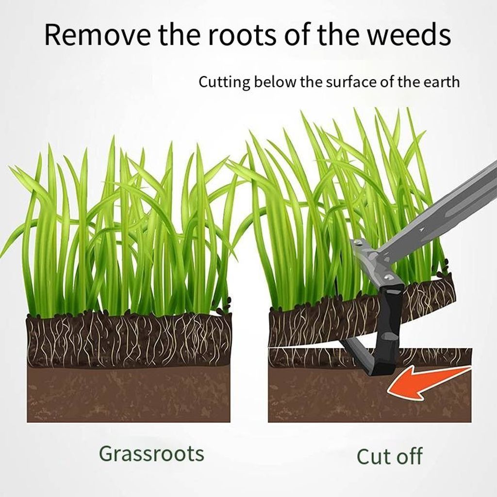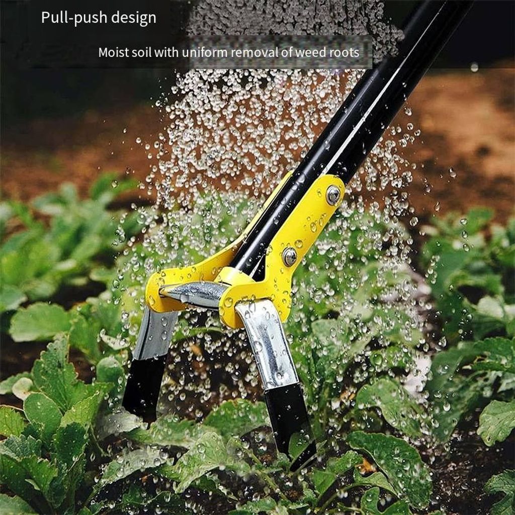 This push-pull weeding tool doesn't require bending over when operating. Just align the clamp with the weeds and push and pull them, pulling out stubborn weeds completely. The sharp blade cuts through the grass stems. It can be assembled with an extended handle and a non-slip handle, making it lightweight and easy to use. It's suitable for both elderly and women users. Say goodbye to the strain on your back when weeding, and enjoy effortless gardening.