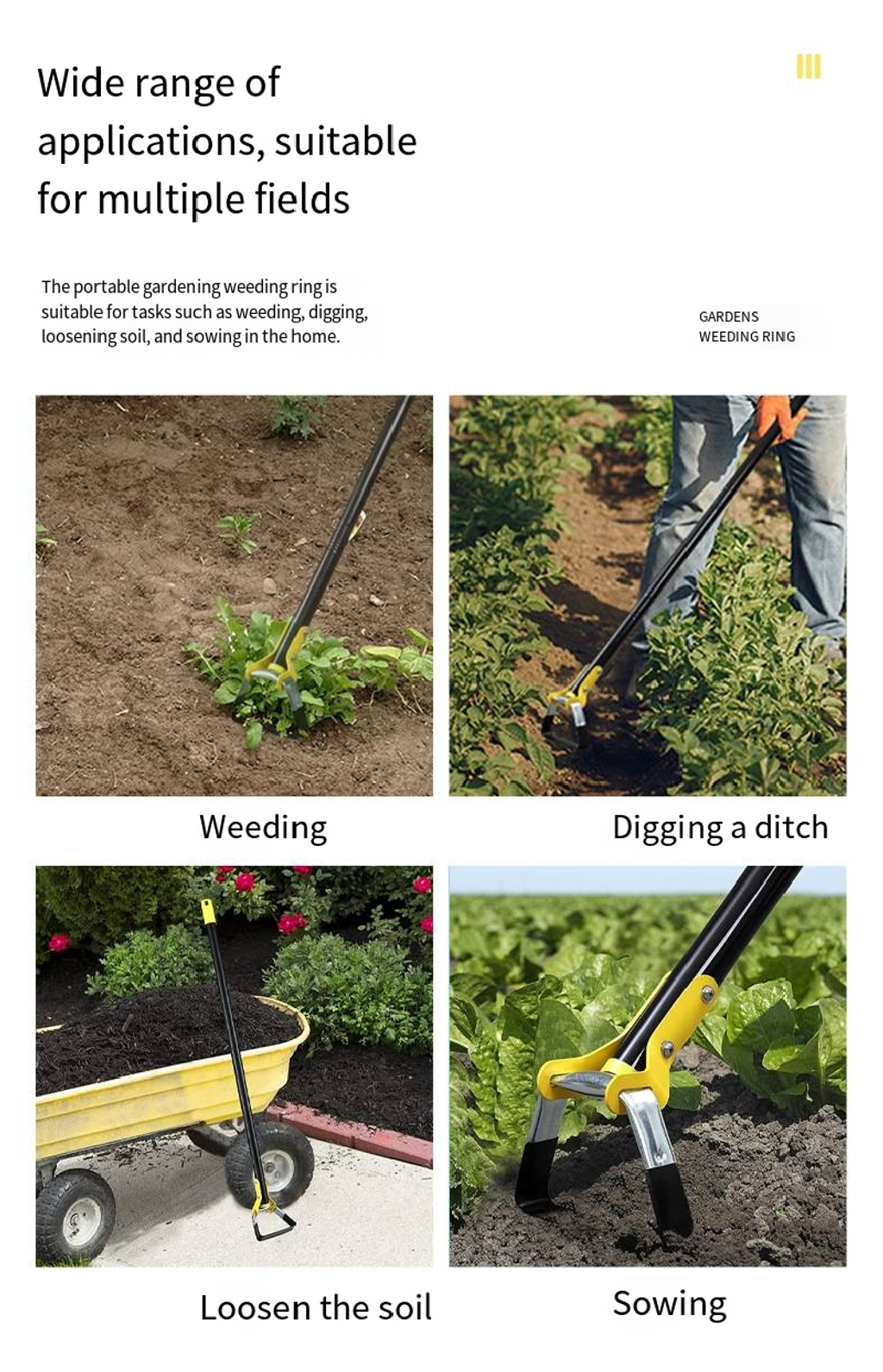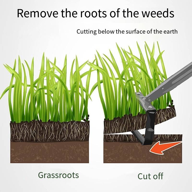 It adopts a unique "push-pull structure" and is equipped with a hoof-shaped shovel head in the shape of a hoof: gently press down on the weed root, then push forward and pull backward, and the shovel head can penetrate deep into the soil (even in damp and soft soil), precisely cutting the main and side roots of the weeds, achieving "remove the weeds along with the roots", preventing the recurrence of weeds at the source. Without using brute force to pull, it can be completely cleaned, with efficiency being more than three times higher than manual weeding.