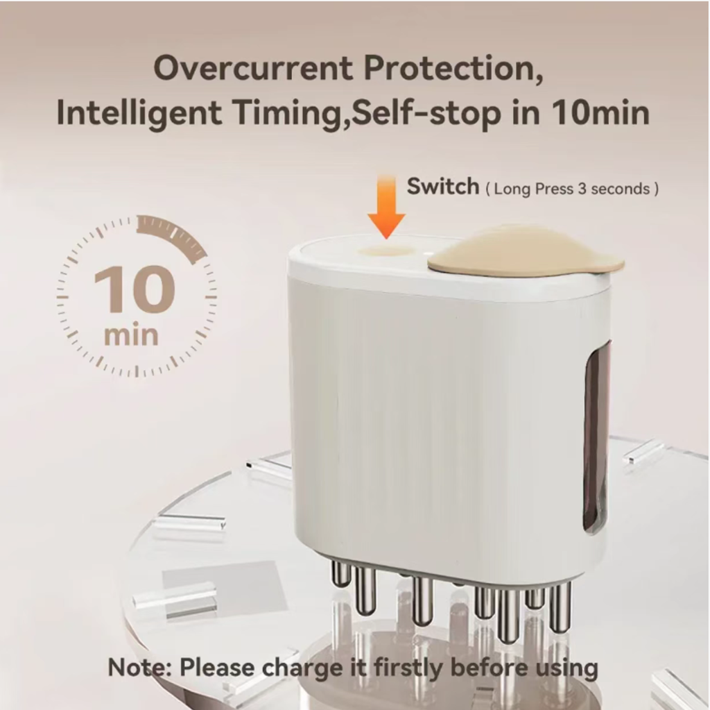 It is best at addressing the "application pain points": Pressing out liquid + Ball-shaped liquid guide head. Hair growth lotion and essence water flow evenly through the teeth of the comb, not flowing to the cheeks or hair roots like hand application. They precisely cover the scalp, with each drop precisely targeting the cutting edge. There is no more waste of expensive hair care products. The teeth fit the curvature of the scalp. Even for hard-to-reach areas like the top and back of the head, a gentle push can spread them evenly. Even those with poor hand dexterity can also apply the medicine precisely.