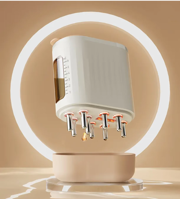 This scalp massage comb is a convenient hair care gadget: The press-type liquid release precisely delivers the essence without waste. The combination of red light, EMS microcurrent, and high-frequency vibration promotes absorption. It stops automatically after 10 minutes with intelligent timing. It's suitable for both night owls and hair care enthusiasts. You can enjoy professional-level scalp SPA right at home.