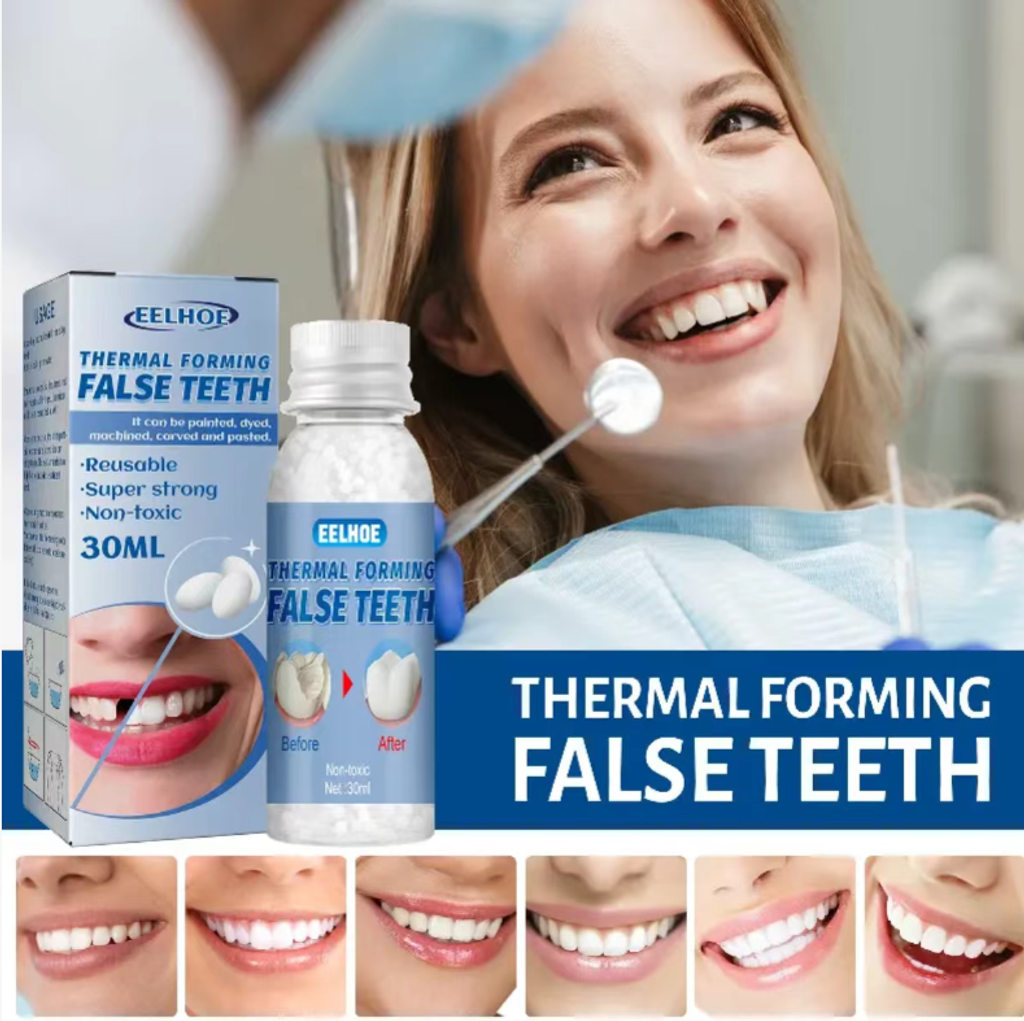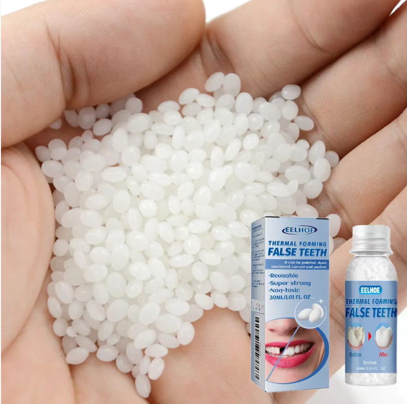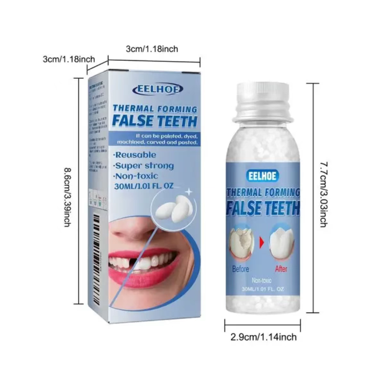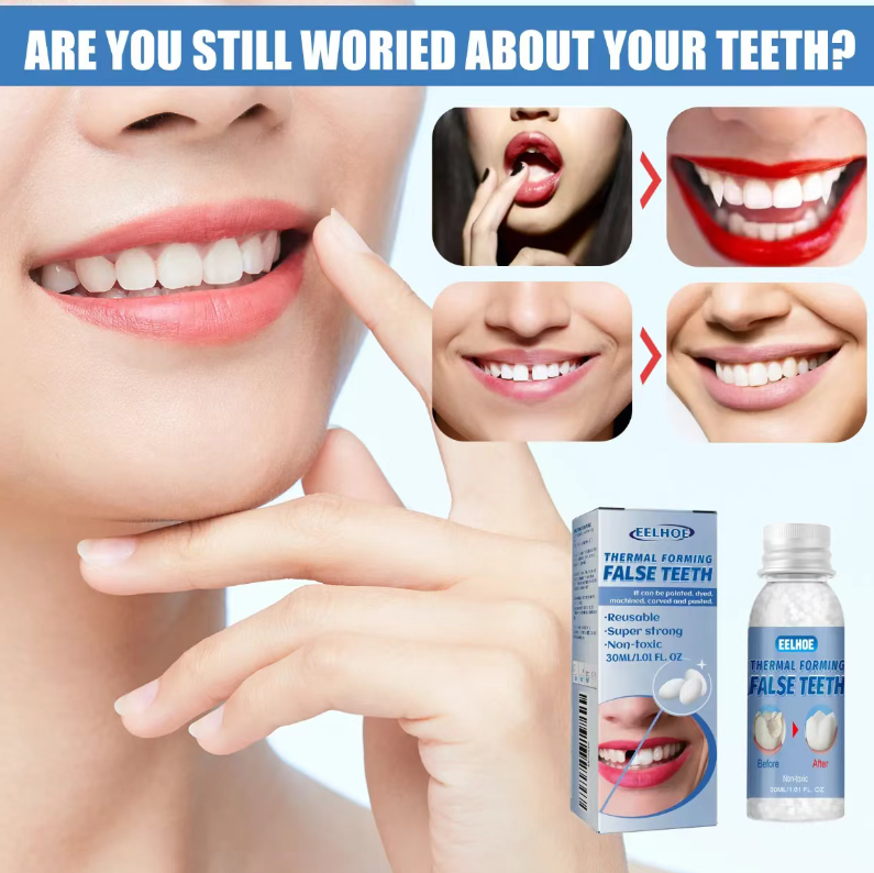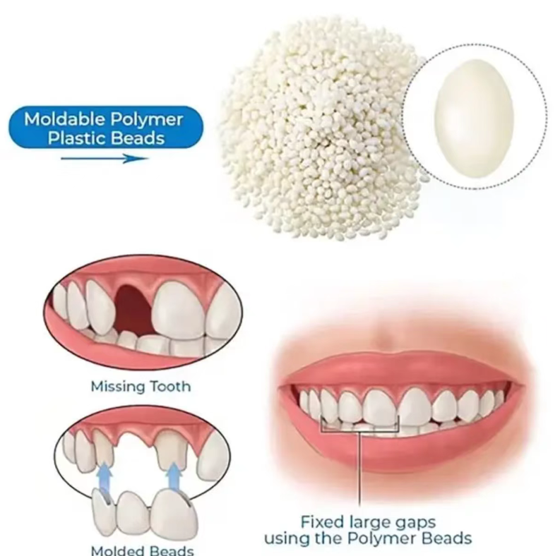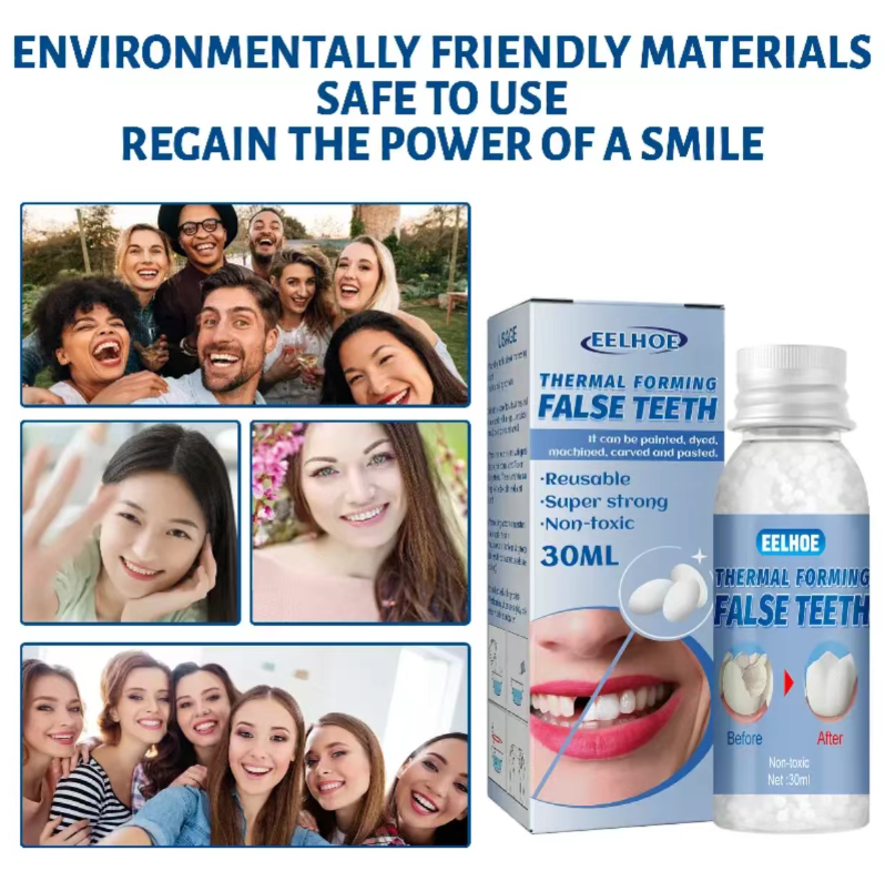 It is the "temporary cover-up" for missing teeth: The operation is so simple that you don't need to learn - heat it to soften and shape it to fit the missing tooth area, then cool it and it can temporarily fill the gap. During a meal or photo shoot, you can smile without covering your mouth. The material is non-toxic and reusable, and after use, you can clean and store it, and it can be used again when going out next time.