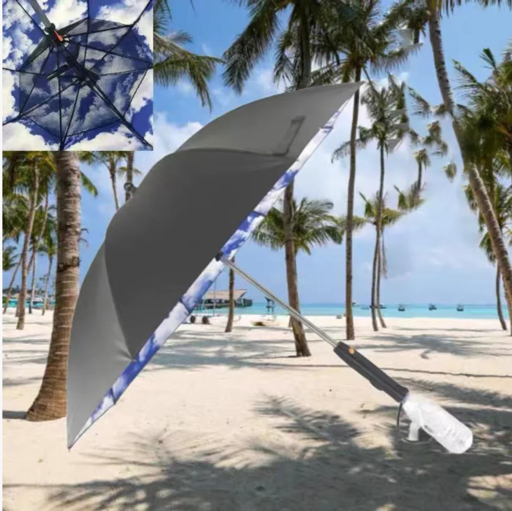- 【Charging Fee: Free water bottle + USB charging cable】With fan and spray / rechargeable UV-protective umbrella for rain.