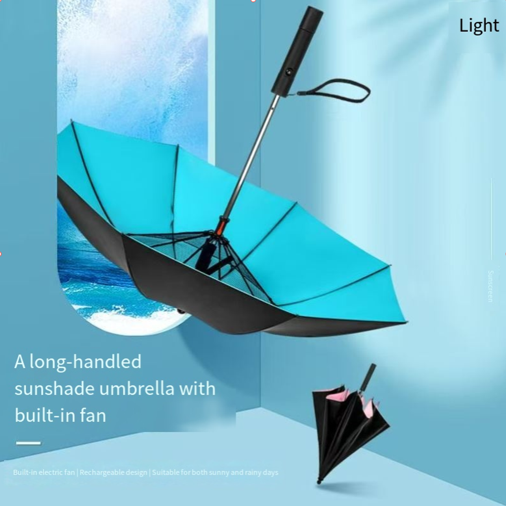 This umbrella has black rubber coating to block ultraviolet rays, and the frame houses a fan to blow away the heat. It has a 2600mAh battery that can charge your phone. It is a dual-purpose umbrella that can be folded and has two wind force settings. It comes in multiple colors such as pink, yellow and blue. It is convenient to carry in your bag for commuting or shopping, allowing you to enjoy the outdoors in summer without being sweltered by the sun.