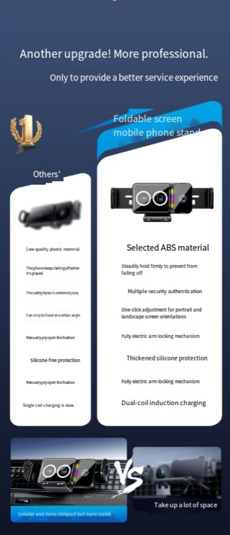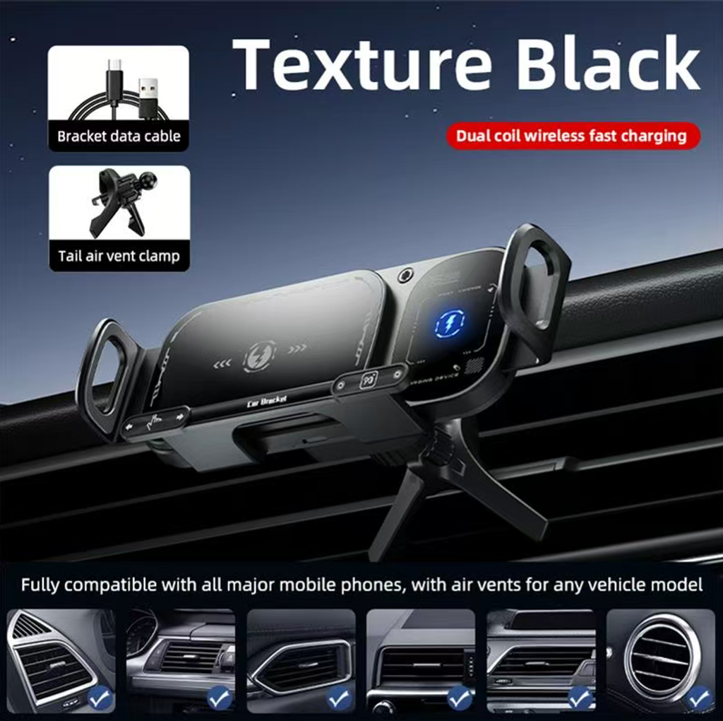 The phone holder keeps falling off when driving? During emergency braking, it "clatters" against the center console, the charging cable gets tangled into a "mess", and the folding screen gets stuck - this wireless charging holder precisely targets the "pain points" of car owners when using their phones.