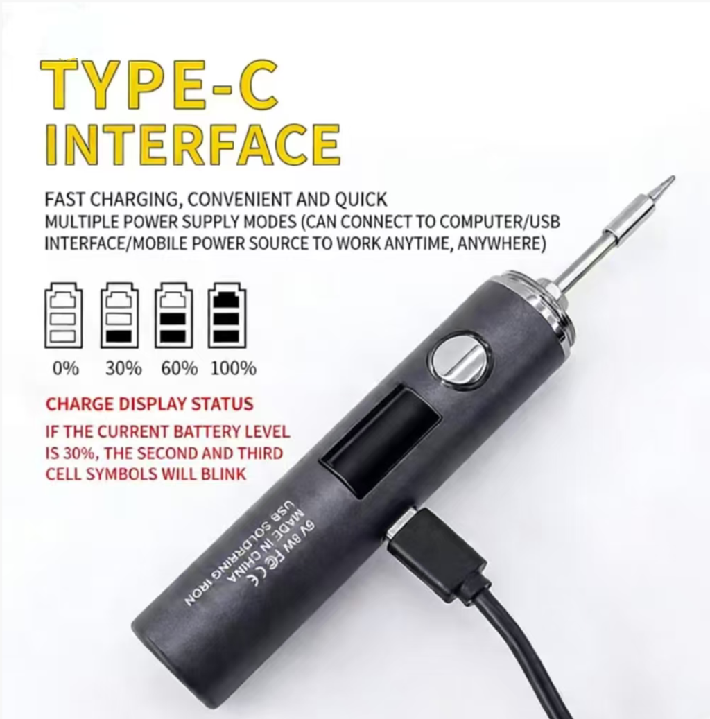 It is the "freedom of the soldering iron hand": Type-C interface charges with 5V power, with a built-in 1400mAh lithium battery, fully charged it can last for 30 minutes for household repairs. No longer having to position the equipment near the socket, you can take it wherever you want to solder in the sofa gap or the corner of the desktop. No longer having to deal with the tangled wires.