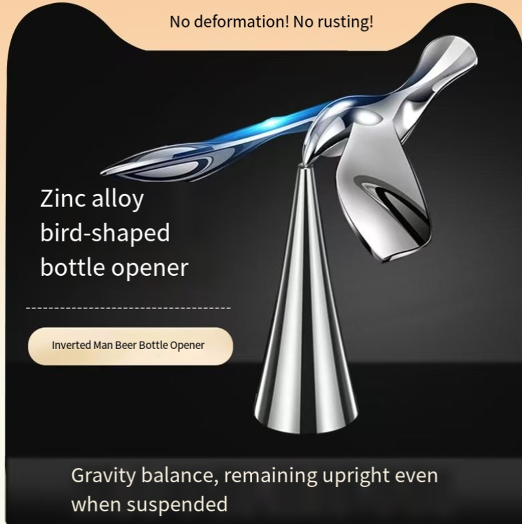 This zinc alloy balancing bird bottle opener uses gravity-based technology to remain suspended without falling. It can rotate 360 degrees and stand steadily when pressed. It saves effort when opening beer or soda. It is not only a stress-relieving toy for social gatherings but also a decorative piece for the tabletop. It is both practical and a social focal point.