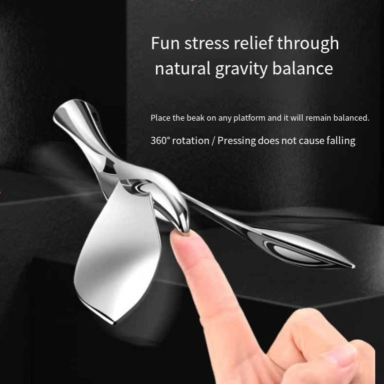 It is a physical wonder of gravitational balance: The bird-shaped object is made of zinc alloy. As long as you place the bird's beak on any flat surface, it can remain balanced in the air. It can rotate 360 degrees and won't fall even when pressed - when you have nothing to do, you can spin it around, making it a stress-relieving toy during breaks at a party.