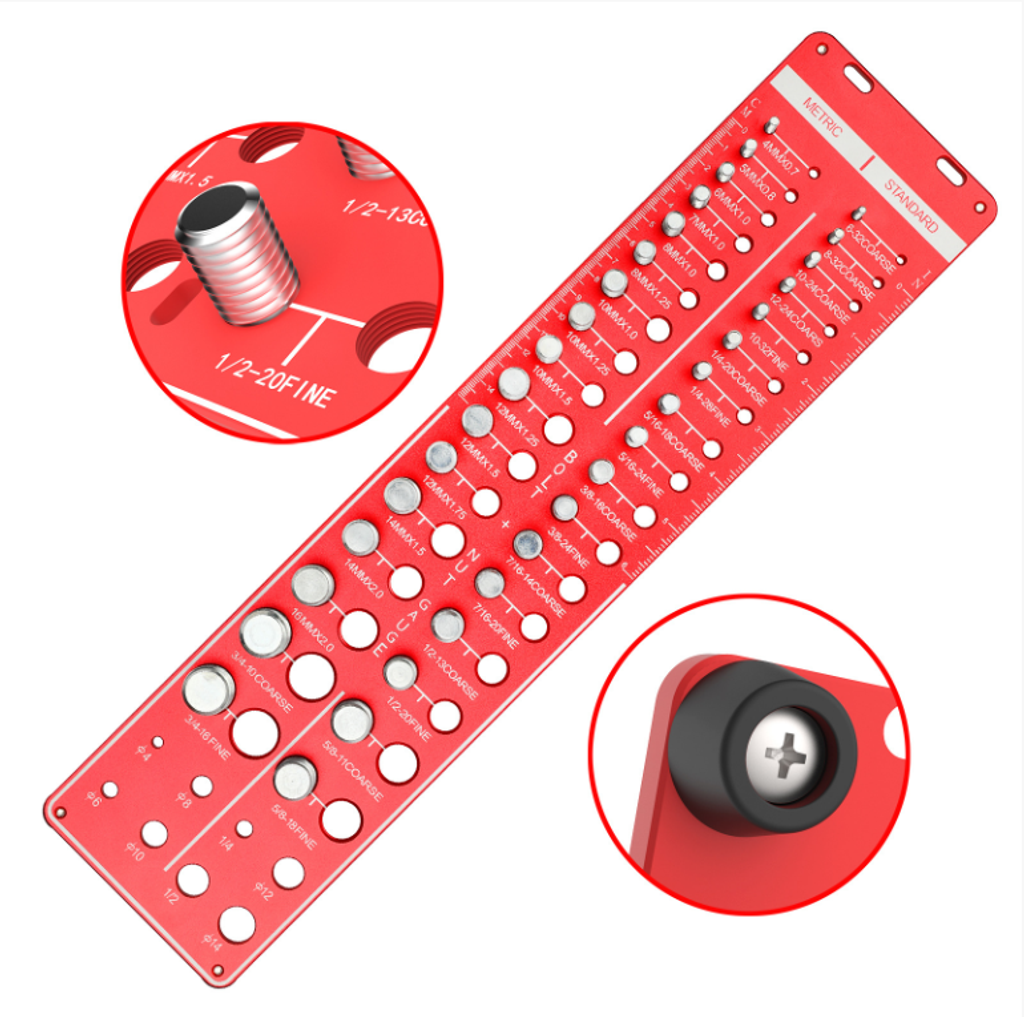Its core is precise and fast classification: integrated metric + imperial double specification thread slots. Whether it's screws, nuts or bolts, simply insert them into the corresponding slots, and they can be immediately matched with the specifications (covering common thread sizes). There's no need to consult a manual or rely on experience. Even beginners can identify the specifications in just one second.