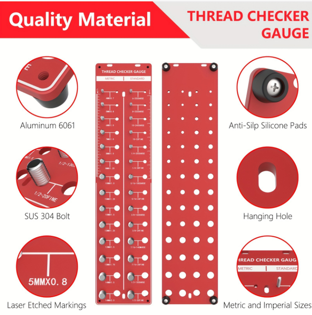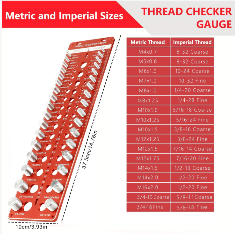 It is like a "thread specification dictionary": one side lists 21 metric threads (from M4×0.7 to M14×2.0), and the other side lists 21 imperial threads (from 6-32 to 1/2-20). Whether it's the commonly used M8 bolts in automotive repair or the 1/4 nuts needed for DIY projects, you can find the corresponding measurement positions on this board. Without having to flip through a manual to look up parameters, this one board covers most of the daily thread specifications.