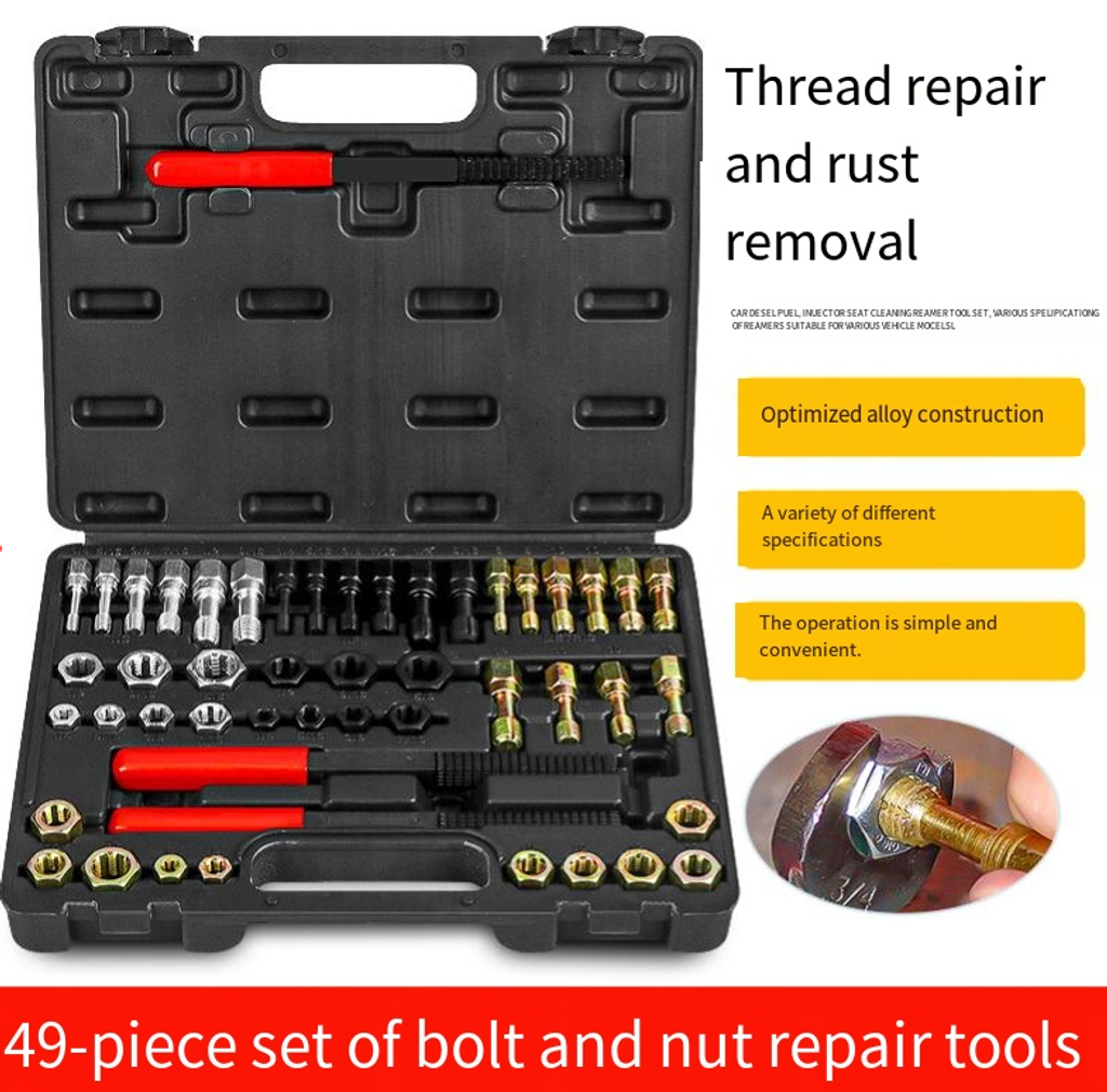 For auto mechanics and mechanical enthusiasts, stripped bolts and rusty nuts are extremely troublesome problems! Don't worry, this 49-piece bolt and nut repair tool kit is your "magic weapon" for solving all kinds of fastening component issues. From thread repair to rust removal, it handles all kinds of fastening problems in one go.