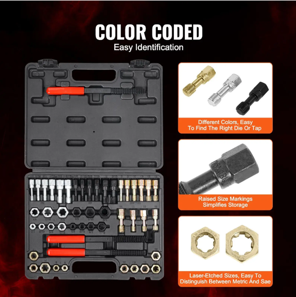 Thread Repair Magic Tool,A 49-piece set of bolt and nut repair tools, durable and easy to operate. It covers functions such as thread repair and rust prevention and disassembly. Even beginners can easily repair stripped or rusted bolts, making it an excellent assistant for auto repair and mechanical maintenance.