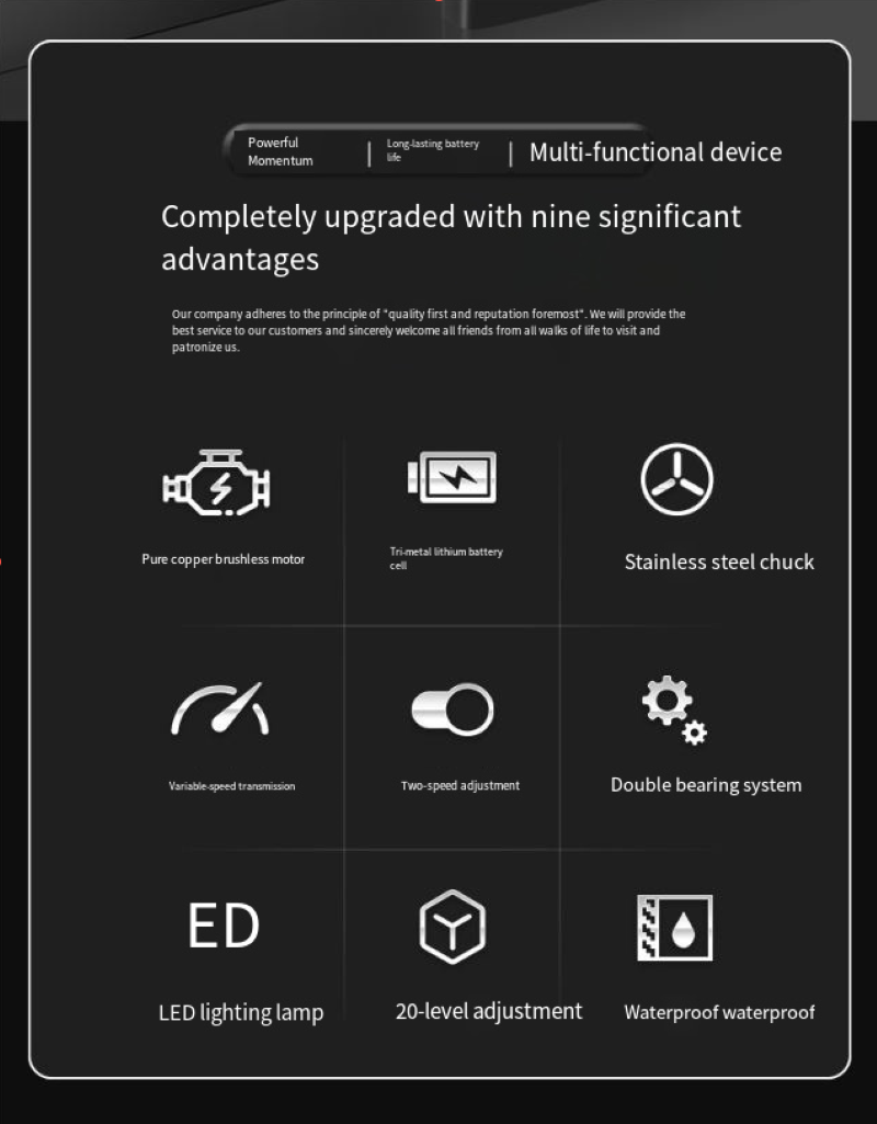 In the dust of construction sites, at the details of furniture assembly, and within the confined spaces of hardware repairs, a handy electric tool is the "sharp blade" that helps craftsmen overcome challenges. Today, we are going to reveal this brushless lithium battery drill, which, with its "performance revolution + all-scenario compatibility + durability and ease of use" triple advantages, redefines the value of electric tools and has become a favorite among professional craftsmen and DIY enthusiasts.