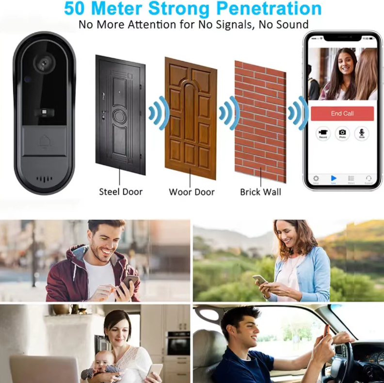 You can install it safely even on rainy days: The IP66 level of water resistance is like wrapping a "raincoat" around the doorbell, so you don't have to worry about getting wet in a heavy rain. When you go out to work, you don't have to worry about the equipment getting damp. When you come home, you can still clearly connect to the doorbell.