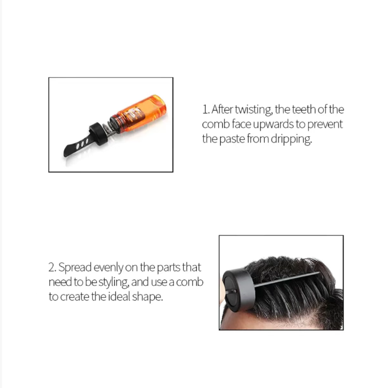 No need to learn complex styling techniques: After washing your hair and blotting it slightly dry, simply use the built-in comb to comb through your hair. Follow the desired hairstyle direction and comb several times. The gel will naturally distribute along the comb teeth, and you can create a clear outline slick hairstyle in just a few seconds. The compatibility recommended by professional hairstylists, even for those with clumsy hands, can achieve a neat and refined effect.