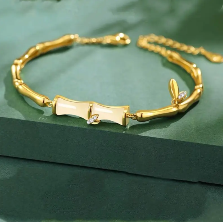 It is the refinement of craftsmanship, inspired by bamboo segments, integrating the natural elegance and modern light luxury techniques. Each "bamboo" segment is meticulously polished and coated with a warm gold finish, reflecting a low-key yet captivating luster under the light, just like your inner composure and refinement. The contour of the bamboo segments is a tribute to nature and an interpretation of the beautiful meaning of "ascending step by step". Wearing it, it feels like attaching a upward expectation to your ankles, and every step is taken with confidence and strength.