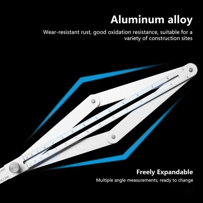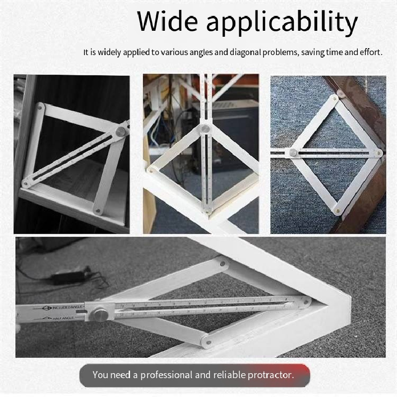 Professional Universal Angle Measuring Tool (Counter Square), with high precision and strong durability, caters to the measurement needs in all scenarios of home decoration, woodworking, and construction projects. It is the preferred choice for professionals and home users. The body is made of aerospace-grade aluminum alloy, which is forged through multiple processes. The thickness meets the standard and the structure is stable. It is not only lightweight and easy to carry but also has excellent rust-proof, wear-resistant, and impact-resistant properties. Even when frequently used in damp and dusty construction environments, it can maintain a stable shape, not deform or fade, and extend its service life.